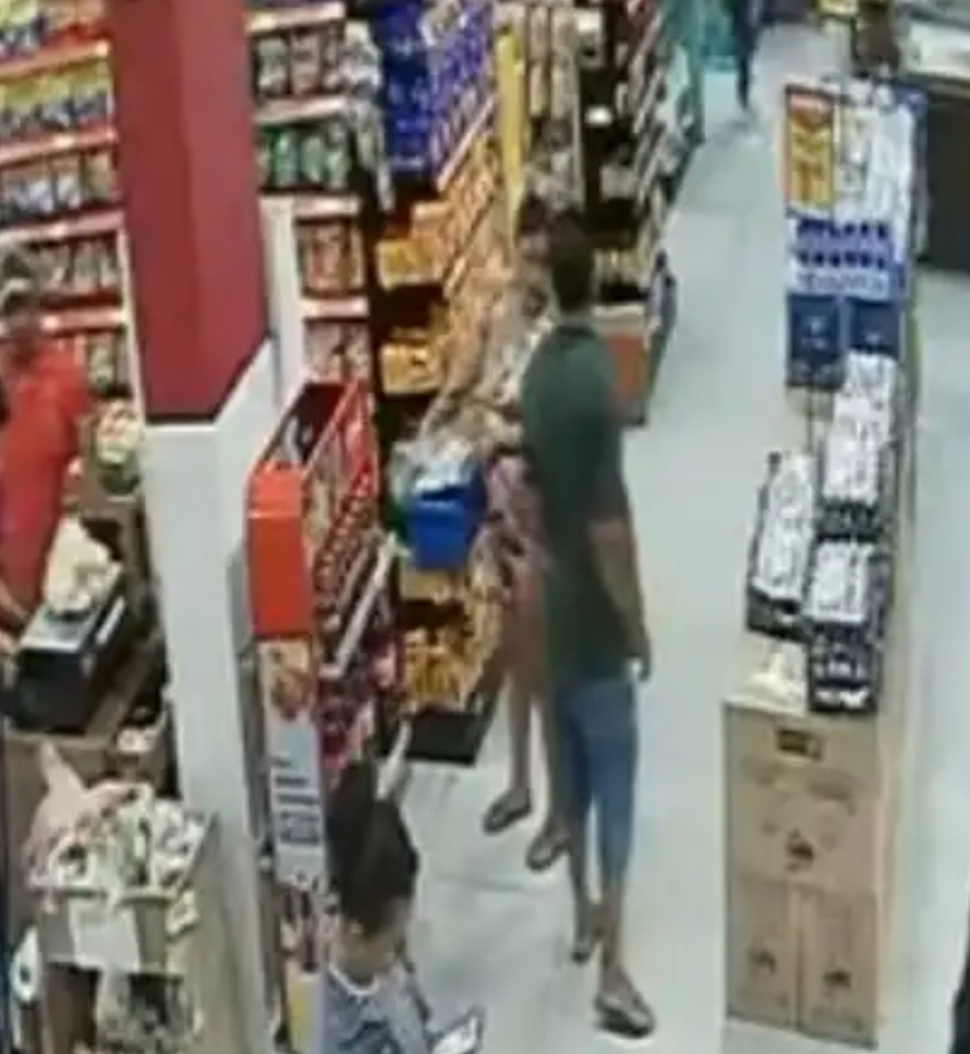 Rapidamente a equipe foi ao local mencionado e lá chegando, a vítima relatou que um homem teria se roçado na vítima e dado-lhe um beijo em seu pescoço e que iria até a casa a mulher. A mulher relatou que o suspeito ainda estaria dentro do estabelecimento, trajando uma camisa verde, short jeans, com cabelos grisalhos, porém a vítima disse que não tinha nenhum conhecimento pessoal com o homem. Ele foi abordado e indagado sobre o possível cometimento do crime, negou todos os fatos narrados pela vítima. Entretanto, após diligências e pelo o fato do estabelecimento dispor de sistema de monitoramento foi visualizado o suspeito acompanhando-a em alguns setores do comércio como também chegou a encostar na mesma.