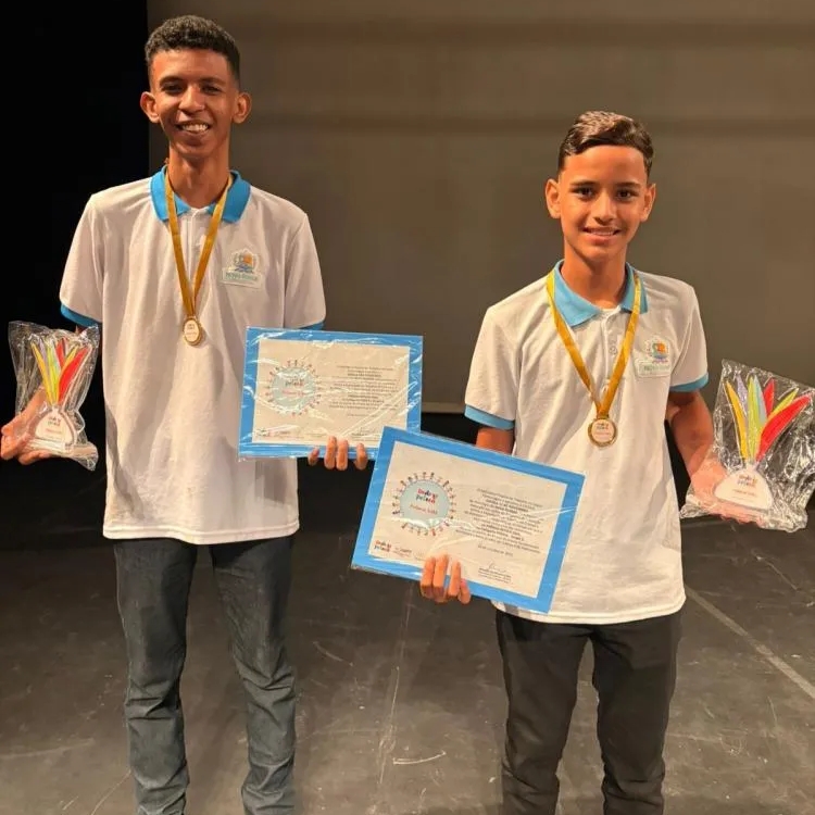 Os estudantes Levi Sousa, da EMEF 11 de Novembro, e João Pedro, da EMEFTI São Francisco, conquistaram respectivamente o 1º e o 4º lugar na categoria Poesia do Prêmio Peteca 2025.