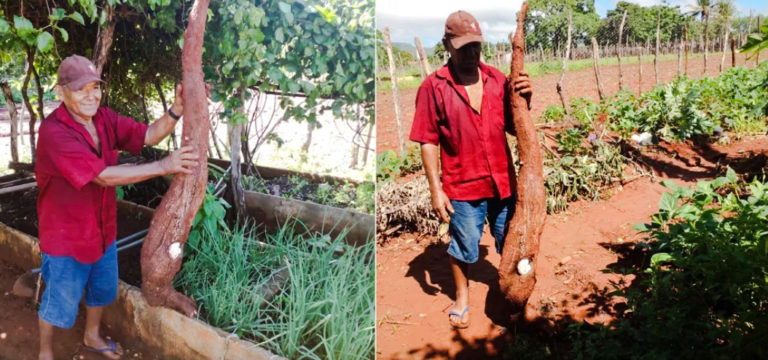 Raimundo Nota de Sousa, 65 anos, colheu uma mandioca de 1,68 metro de comprimento em Ararendá, no interior do Ceará. Uma mandioca gigante de 1,68 metros de comprimento foi colhida por um agricultor em um sítio na localidade de Angola,…