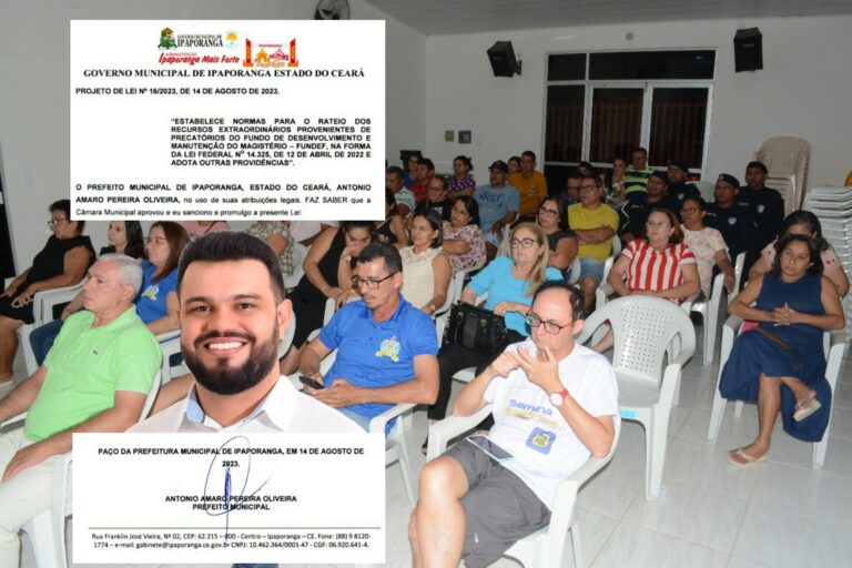 A Câmara Municipal de Ipaporanga-CE aprovou por unanimidade, Projeto Lei de N° 16/2023, de 14 de Agosto, oriundo do Poder executivo, que estabelece as normas para o rateio dos recursos extraordinários provenientes de precatórios do Fundo de Desenvolvimento e Manutenção…