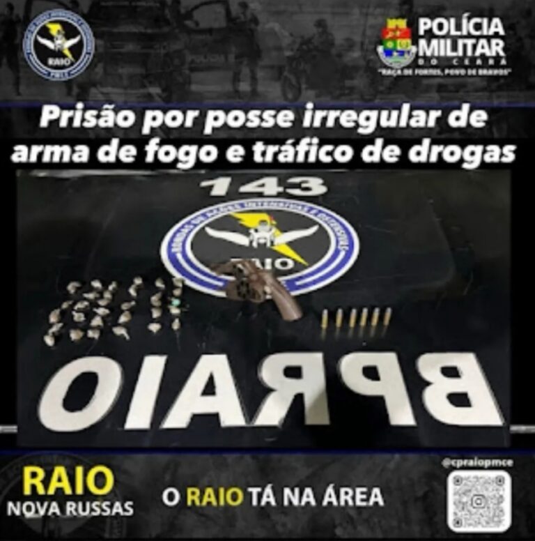 Na noite do dia, 27 de novembro de 2025, por volta das 19h00min, a equipe raio 02 Nova Russas recebeu uma denúncia que na rua Prefeito Francisco Landim, 128, Centro de Ararendá estaria um indivíduo de alcunha “Neto“ e que…
