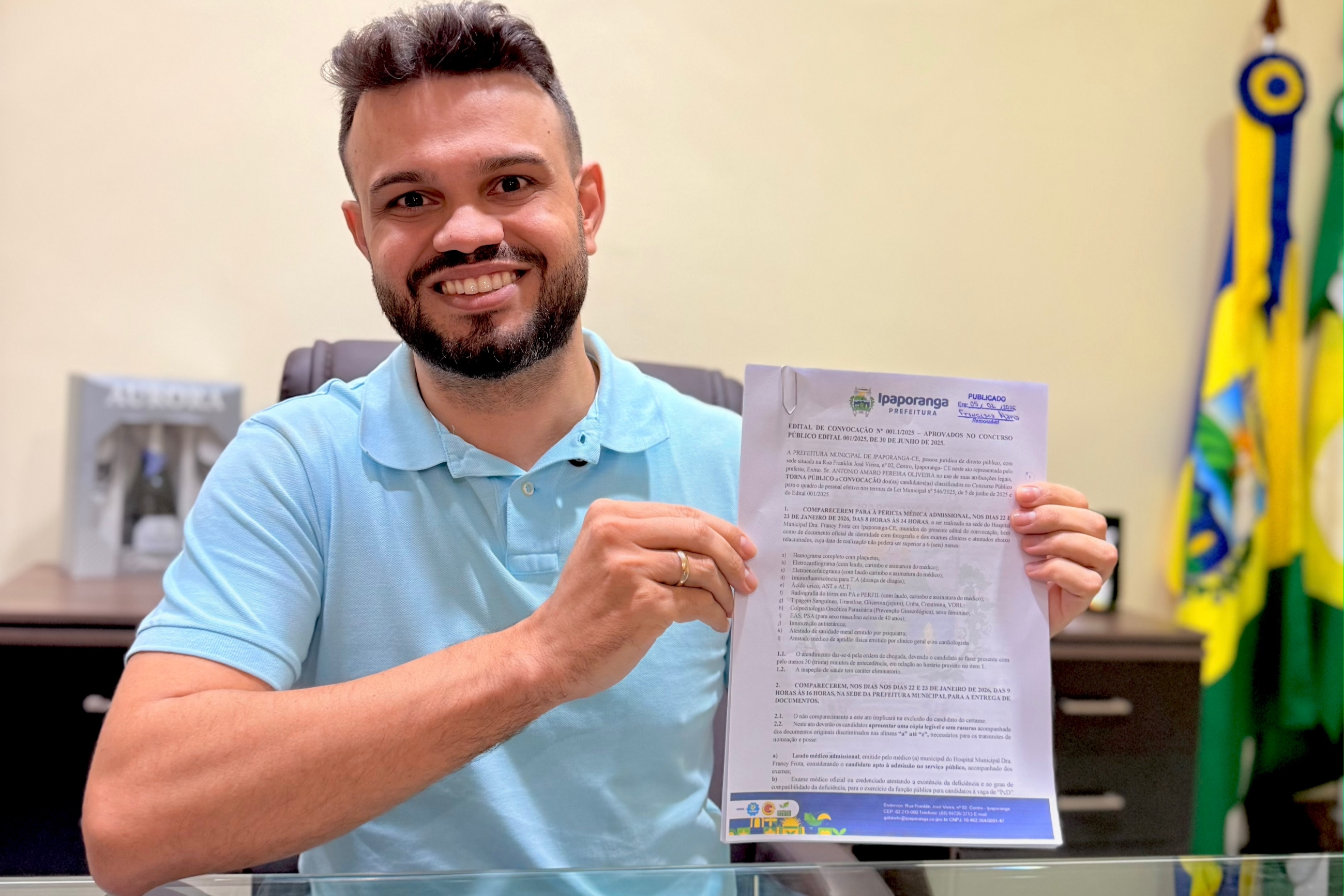 Prefeito Amaro Pereira anuncia convocação dos candidatos classificados no concurso público de Ipaporanga. O prefeito de Ipaporanga, Amaro Pereira, anunciou nesta segunda-feira (5) a publicação dos editais de convocação dos candidatos classificados, dentro das vagas, no último concurso público realizado…