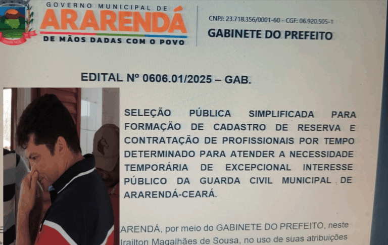 Falta de transparência e publicidade para contratação de agentes de segurança vai descredibilizando a criação da Guarda Civil Municipal de Ararendá-Ce; gerando polêmica e questionamentos. A Câmara Municipal de Ararendá, interior do Ceará aprovou, com votos dos vereadores da base…
