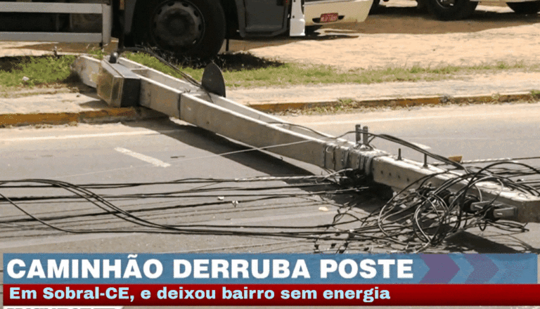 Um caminhão ainda não identificado, derrubou um poste no centro de Sobral na manhã desta Segunda-feira (09), e deixou bairros sem energia elétrica. O fato ocorreu a Rua Eurípedes Ferreira Gomes no centro da cidade. Segundo informações apresentadas pela guarda…